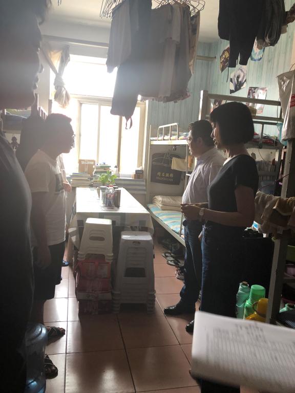 检查结束,在敏学楼805就检查宿舍情况进行开会分析。彭院长指出从检查的结果来看,我院学生宿舍的卫生情况总体令人满意,但没有预评估时期的宿舍卫生要好:在检查过程中发现,部分宿舍的床铺、橱柜门有损坏情况发生,已经及时上报学生处进行报修;对有烟宿舍、没有进行收拾的宿舍,要求今晚必须整改。明天全体教师将会统一对我院宿舍进行再次检查,确保宿舍干净、整洁。营造一个温馨、和谐的宿舍卫生检查,不仅是对学生宿舍卫生状况做一个了解,更是为了能够引起我院学生对学校本科审核评估工作的重视,进一步形成人人参与、人人建设的浓郁氛围,为即将到来的评估工作做好准备!