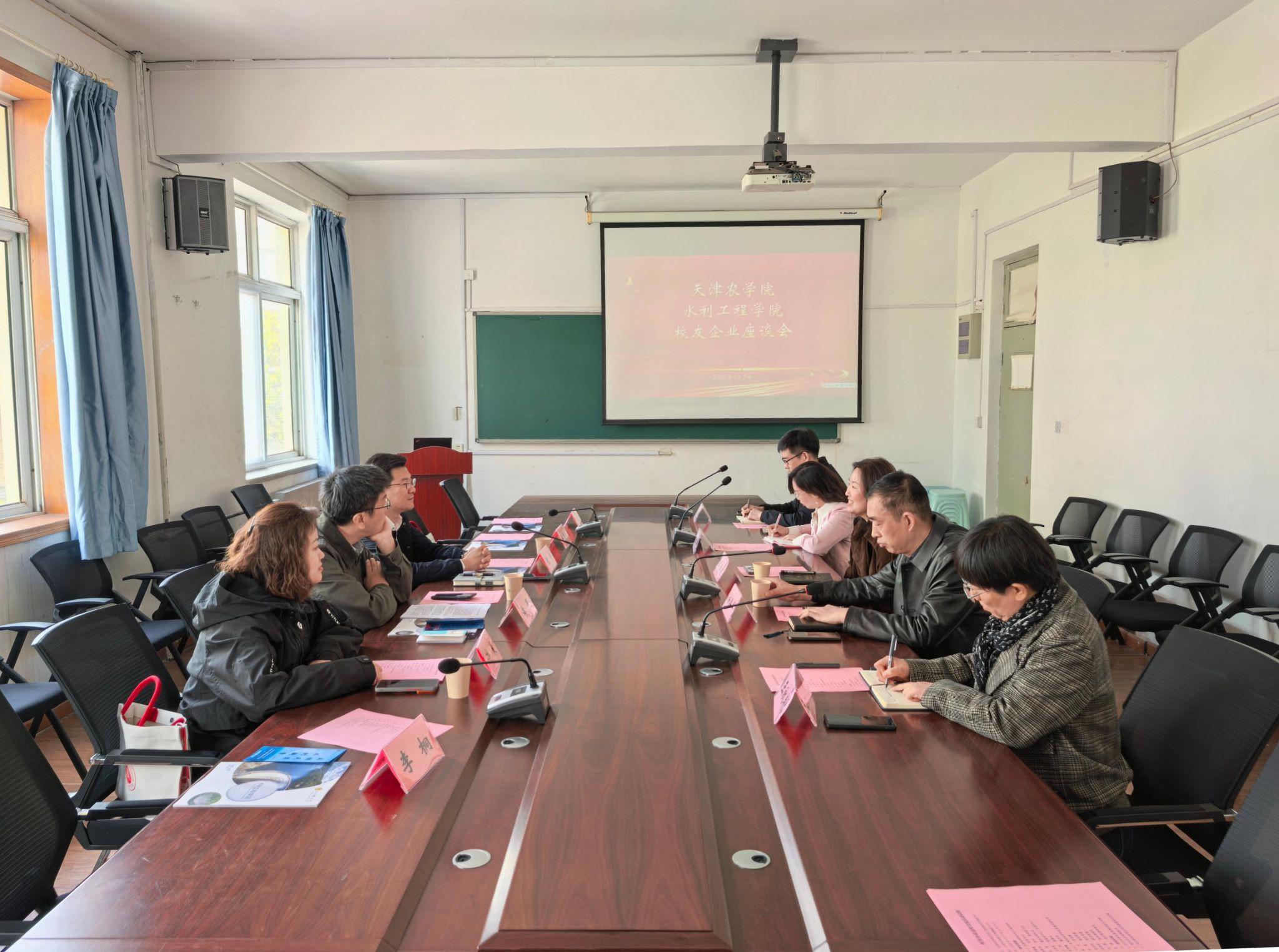 4月8日,天津创水环科技发展有限公司总经理、校友张平一行莅临天津农学院水利工程学院,开展以访企拓岗、校友企业返校、学生定向实习为核心的专题座谈会。教务处副处长余萍、学院党委书记司懿敏、党委副书记、院长杨路华带领班子成员、负责就业工作辅导员参加会议,双方围绕校企协同育人、岗位供给、实习实践等议题深入交流,共话合作、共促发展。