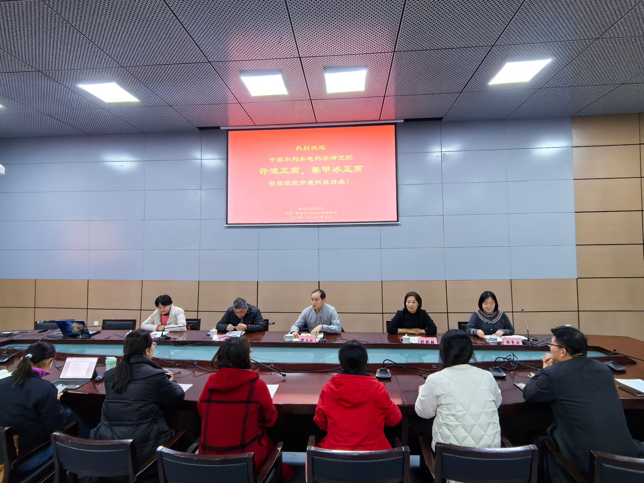 2025年11月24日,中国水利水电科学研究院水利研究所名誉所长许迪正高级工程师、副总工蔡甲冰正高级工程师应邀来水利工程学院开展科研指导与学术交流。科技处处长周文礼、水利工程学院党委书记司懿敏出席活动并讲话,会议由副院长周青云主持。